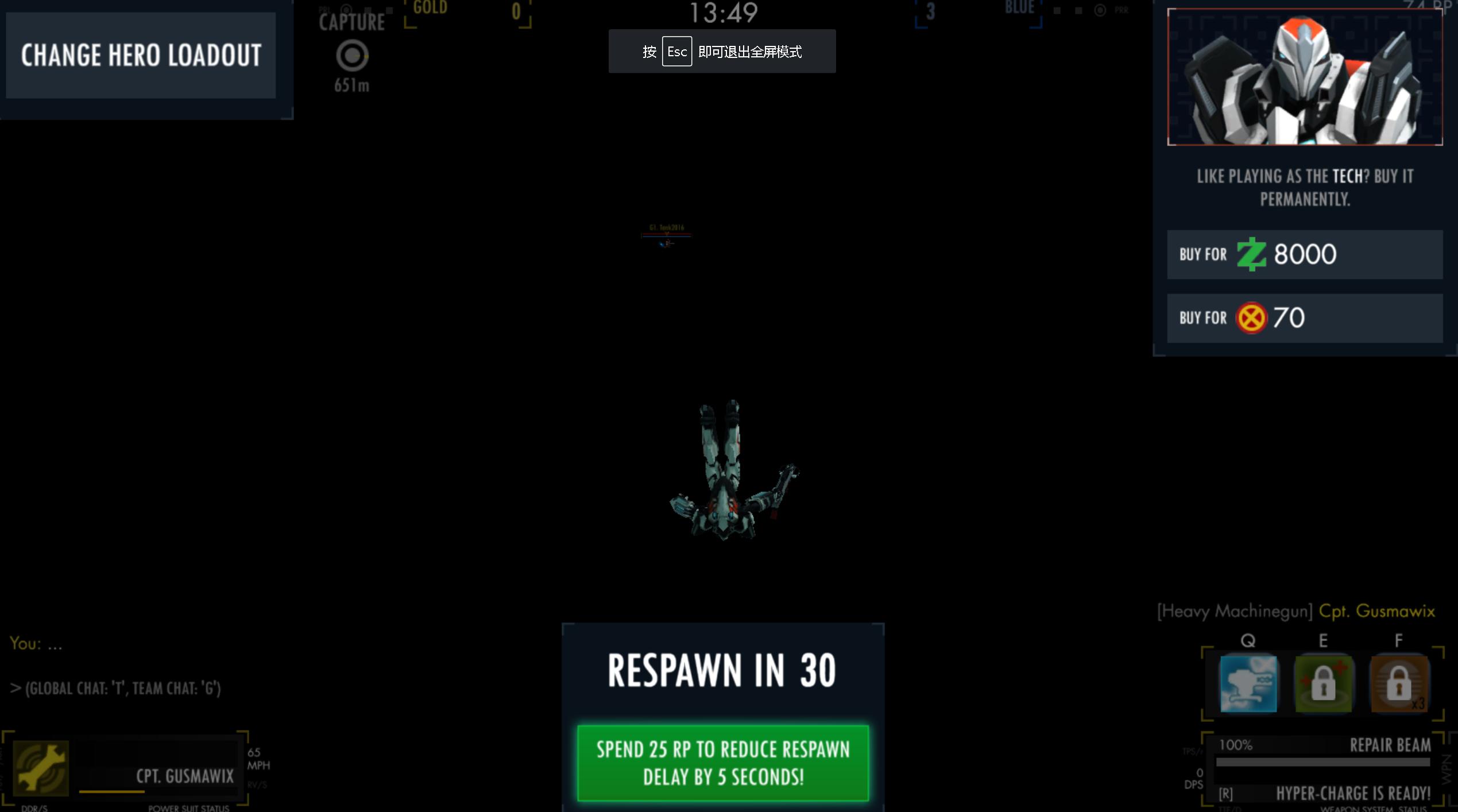 Other thing is, learn what ur abilities do and to which class u should switch. See, u used Scout there. Scouts bomb, Haze, removes that auto-lock. But Blaster doesnt need auto-lock for his own bomb. Stay out of melee range, circle around him with Haze bomb thrown and use ur gun, until u learn to use ur melee more effective.
