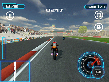 You have to finish the race at least in 3rd position to unlock new location. Choose your motorcycle and stay on the road on full speed in three different championship classes: