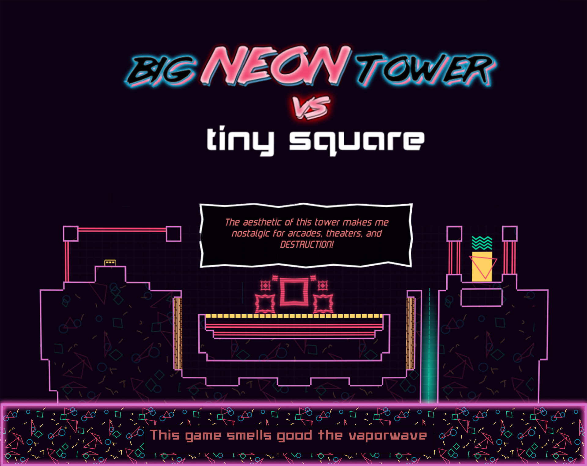 Third game of the series, Big Neon Tower vs Tiny Square will send you directly to the 90s arcades!