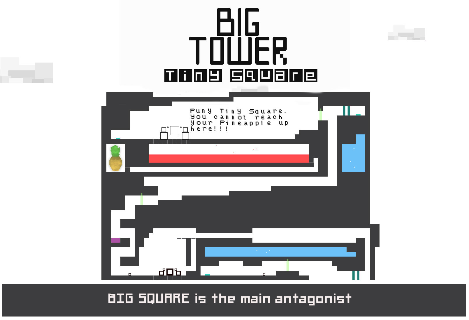 Your best friend Pineapple has been stolen by the evil Big Square :red_square: and taken to the top of a deathtrap-filled Big Tower. Climb the Big Tower, Tiny Square, and rescue Pineapple! :pineapple: