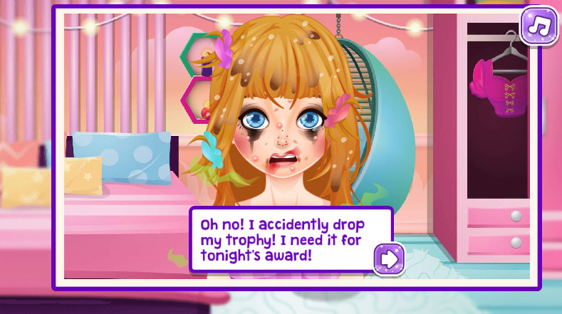 Sofia, our adorable blonde teen, was in a terrible situation because her trophy shattered. That trophy is really important for her event and she is stuck in a very bad shape now. Help her to get clean and glam for the event.