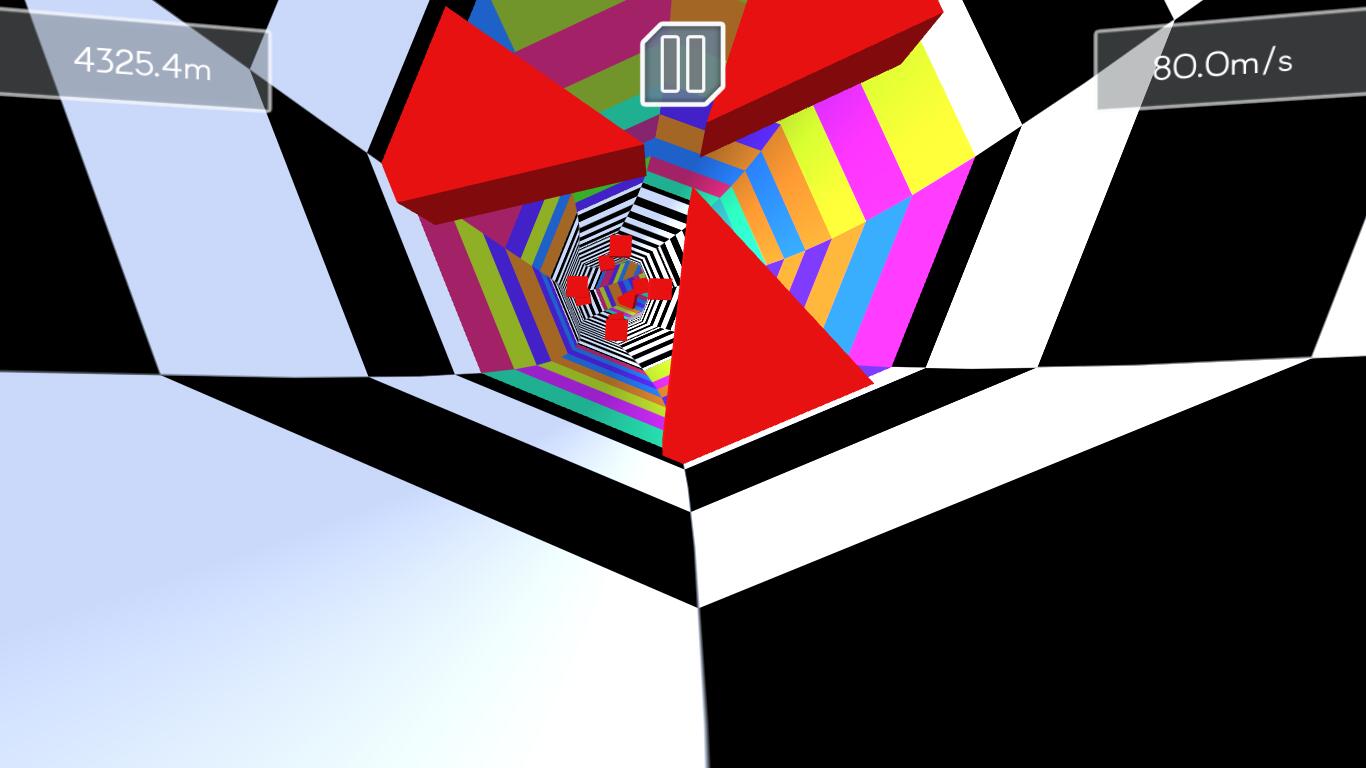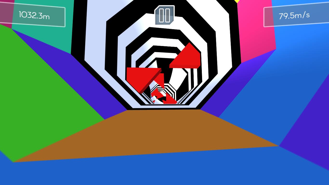 As the gameplay starts you will be inside the tunnel with different b.g.m., you can auto-accelerate on your own but you can only move ← & →. Also you will prepare to avoid obstacles with nothing to avoid on your 5 second getting ready. There are different types of obstacles to avoid, there is also an another level with different obstacles so as level 3. The game becomes intense while fast-pacing. As you finally crash you will have the results & 3 options to choose from.