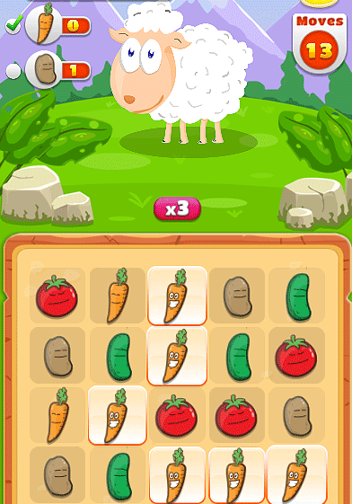 In every level sheep will ask for different vegetables, try to collect them for her.