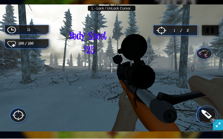 Load your sniper and make sure your aim is perfect and shoot the animals before the timer runs out. Should keep an eye on timer and find and shoot the target number of animals before timer completes.