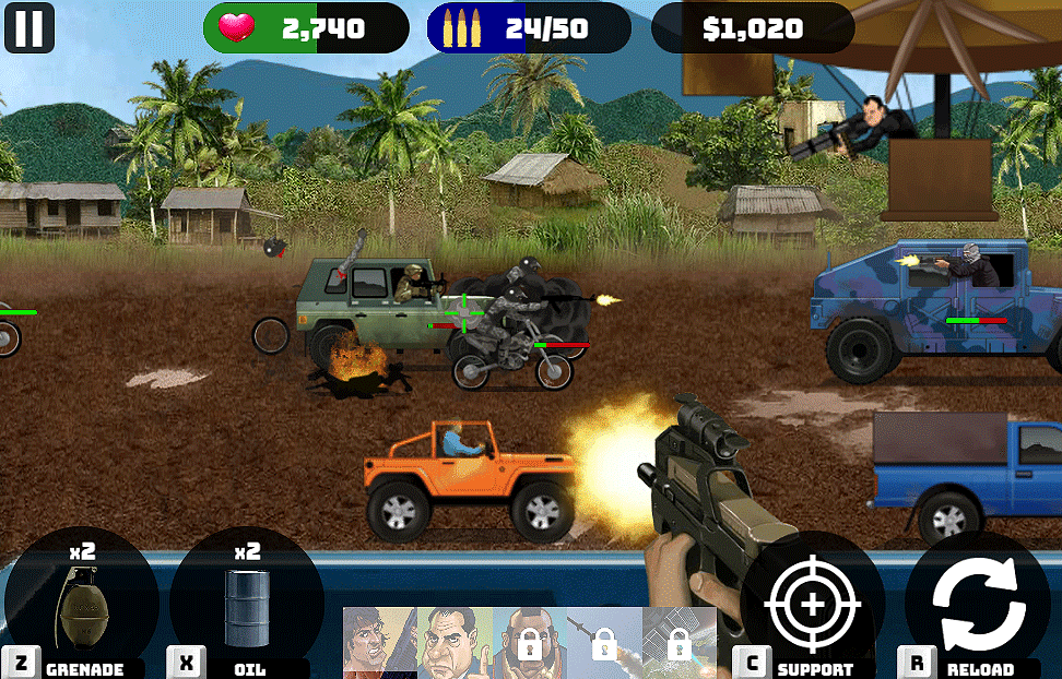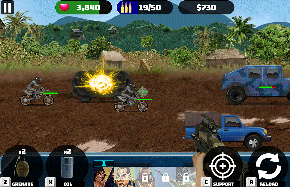 When it thickens, throw grenades, oil barrels, or just call for air support and surprise your enemies.